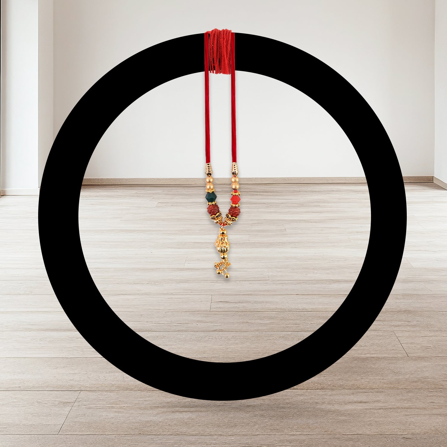 Bhabhi Lumba Rakhi With Multicolor Beads And Hanging Chain Charm On Red Thread